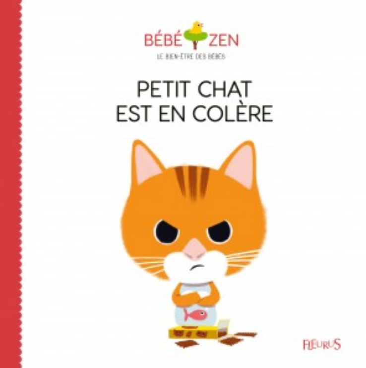 Comme je l’appelle « mon chat », ce tout petit livre était parfait. Il a tout de suite été intéressé et semblait même content de voir que la situation de colère était « normale ». Un petit chat pas content, qui crie et pleure, c’était même drôle tant la ressemblance était frappante !
