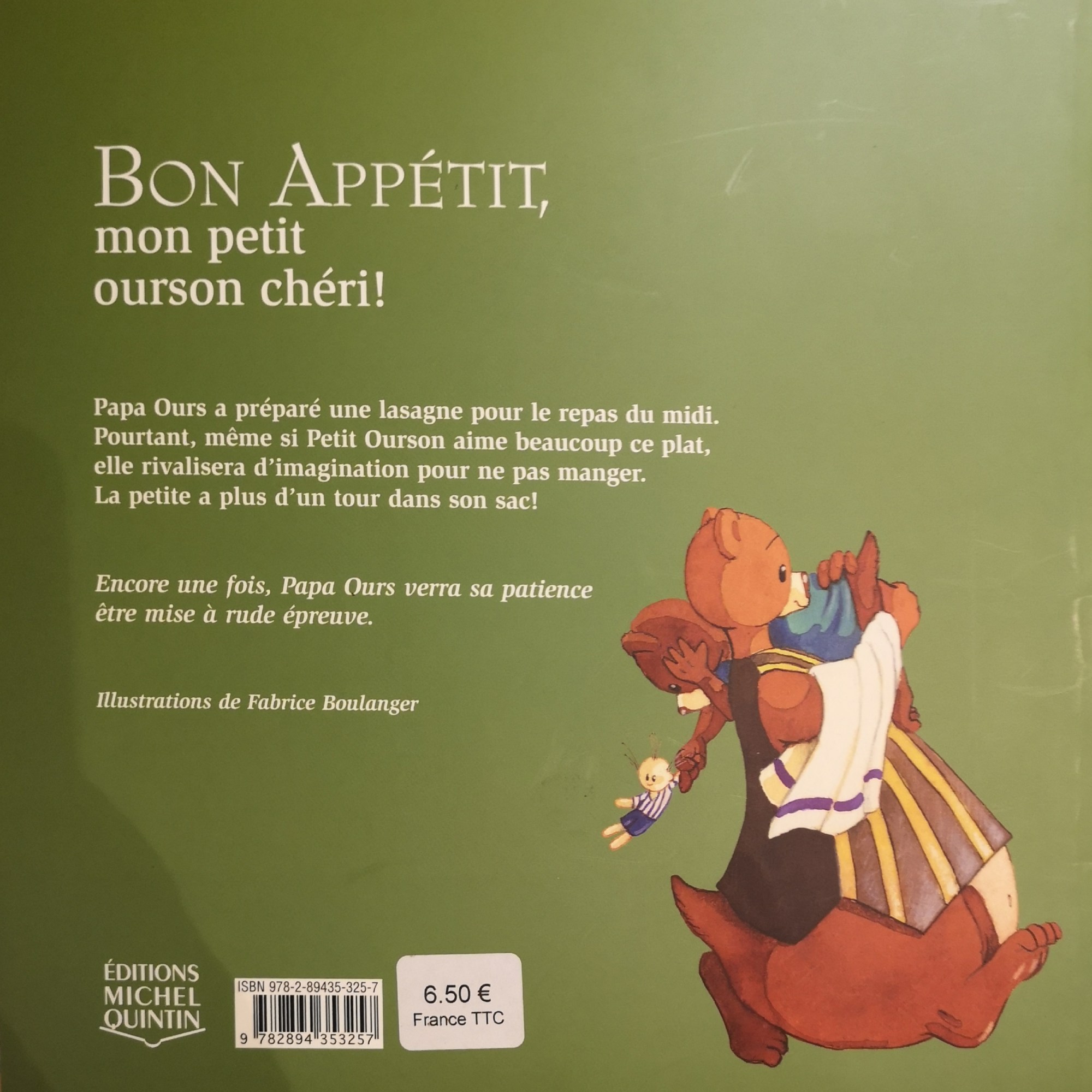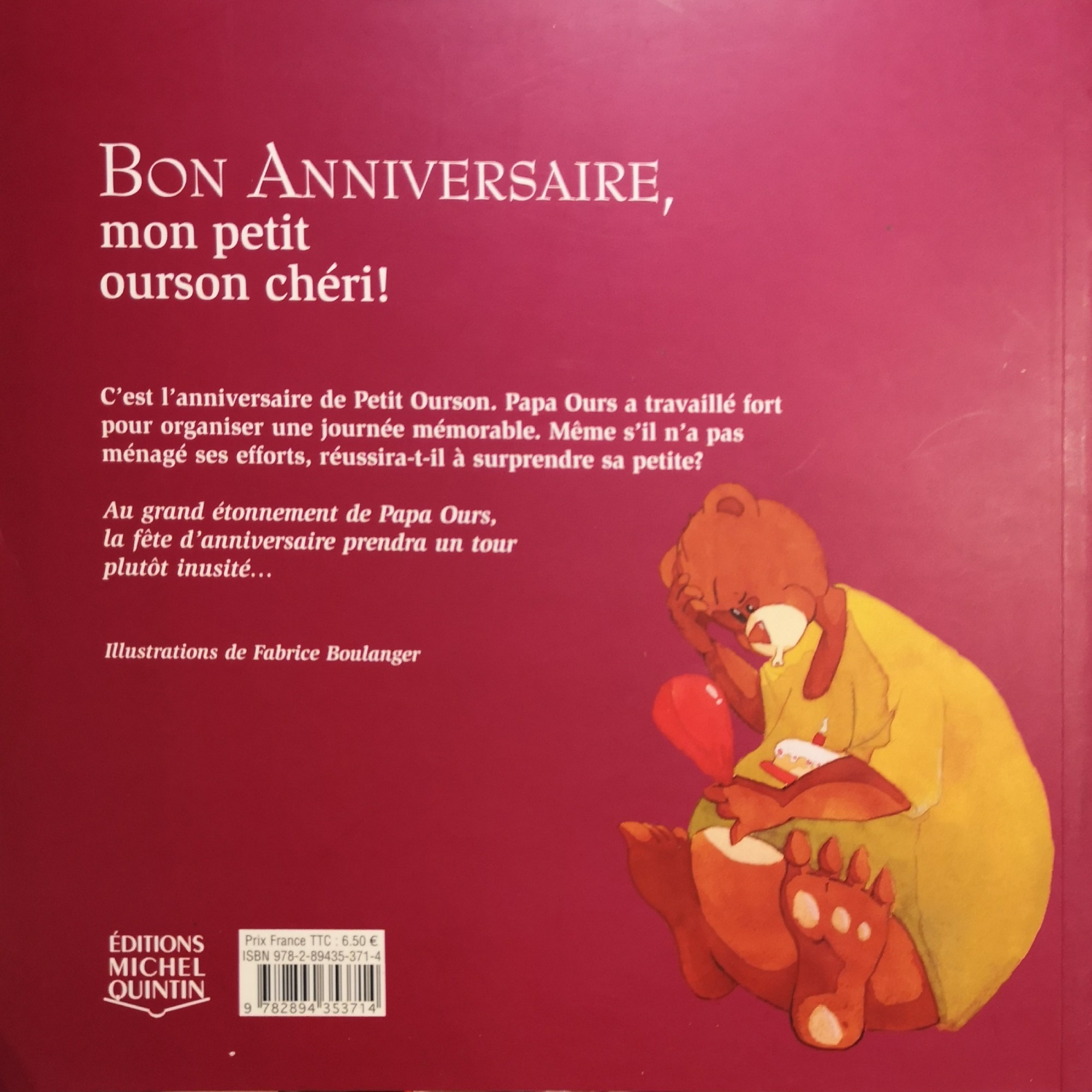 Je ne sais plus sur quel blog j’ai découvert ces livres qui ne sont pas récents du tout (Alain M. Bergeron et Fabrice Boulanger). Et pourtant c’est papa qui gère son petit ours chéri, maman semble travailler, dormir la nuit, ne pas tellement s’être occupée de l’organisation de l’anniversaire. Et tout va bien ! Au premier abord avec l’habitude qu’on a des livres pour enfants et de l’omniprésence des mamans, c’est assez étonnant et puis finalement cela passe très bien ! Cette petite oursonne est très attachante et sait y faire avec son papa, qui gère il faut le dire. Un succès auprès de Bout’Chou et l’exaspération mignonne de Monsieur Chou devant tant d’espiègleries…
