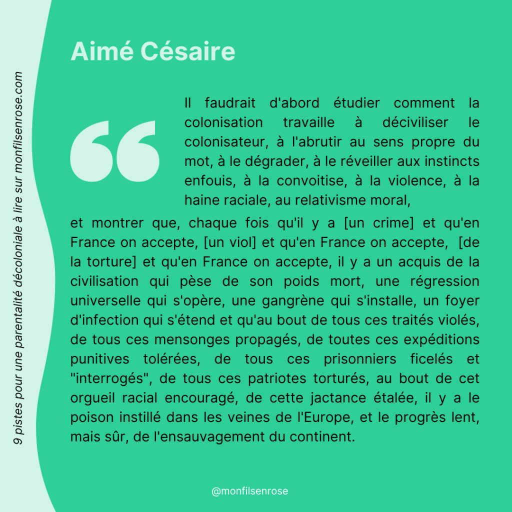 - Aimé Césaire, Discours sur le colonialisme, 1950