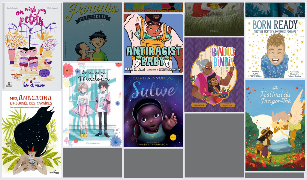- Racisme et antiracisme : C’est un grand mot vu le peu de livres qui abordent directement le sujet, a fortiori correctement. Néanmoins, il y a de quoi entamer de grandes discussions avec nos enfants grâce à un bébé antiraciste, une grand-mère qui accompagne sa petite-fille à embrasser sa culture avec fierté, une jeune fille rejetée pour sa carnation foncée, ou encore une princesse native américaine qui nous prouve que dès 1492, les colonisés ont combattu pour leur humanité contrairement à ce que le narratif colonial nous rapporte…