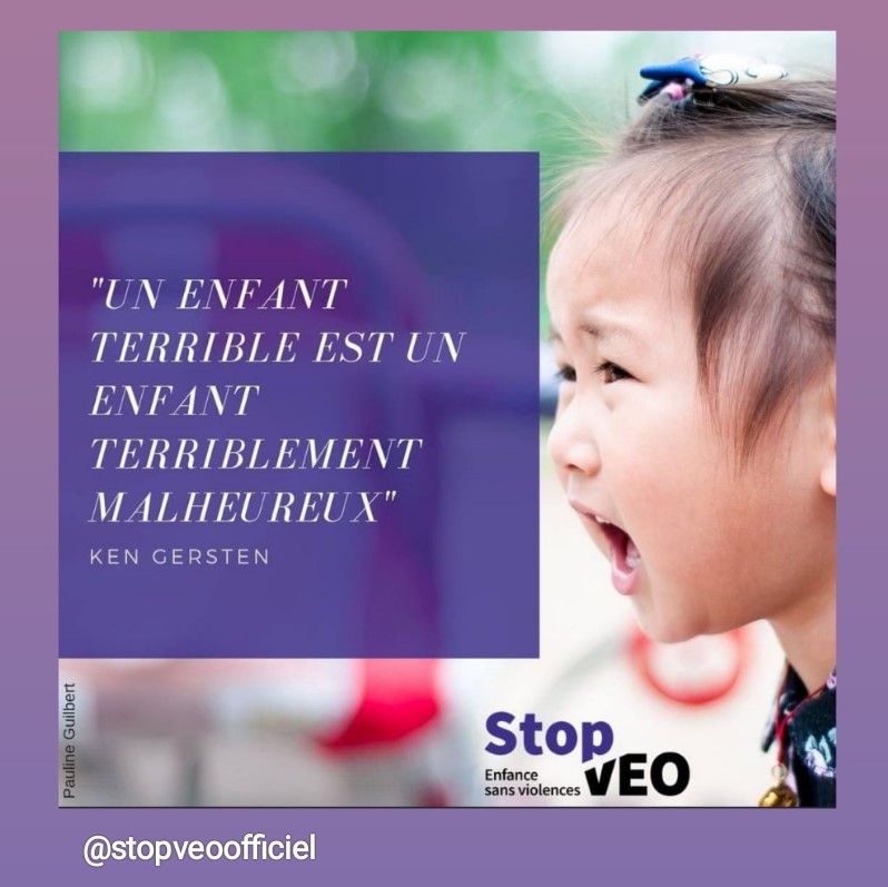 Cette citation « Un enfant terrible est un enfant terriblement malheureux » de Ken Gersten a été publiée telle quelle sur le compte stopveooffciel en décembre 2020 avec pour légende « Nos enfants méritent qu’on s’arrête pour les écouter et les comprendre ». Elle a depuis été retirée…