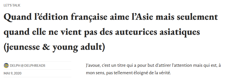 Si l’auteurice n’est pas français·e, il y a de fortes chances que vous trouverez davantage de réponses aux questions précédentes sur les sites des maisons d’éditions originales, notamment US et UK dont les bio d’auteurices et d’illustrateurices permettent de les situer, contrairement à l’universalisme blanc cis hétéro valide du système français.