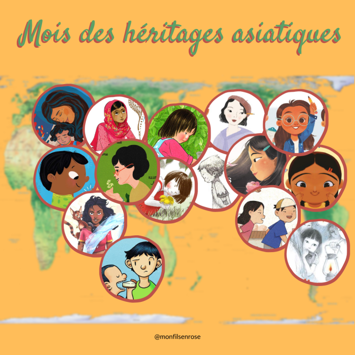 Comme l'année dernière, je profite donc de ce mois pour dédier mes publications de la bibliothèque de Bout'Chou aux personnages asiodescendants et ainsi de célébrer à ma façon le mois des héritages asiatiques.