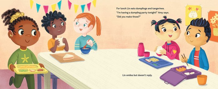 Amy’s class has a new student from China! Amy tries hard to make Lin feel included, but she can’t draw him out of his shell. Then she sees Lin chattering happily in Chinese with his family. The gears in her head start to turn, and a plan blossoms. Step one: invite Lin to her dumpling party…