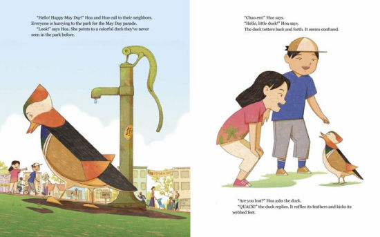Comme tout le voisinage, les jumelleaux Hue et Hoa se préparent pour la May Day parade. En attendant le défilé, iels aperçoivent un petit canard qu’iels n’ont jamais vu auparavant. Il semble un peu perdu et Hue et Hoa décident de l’aider. Grâce à un de leurs ami·es, iels apprennent que c’est un canard mandarin, un oiseau qui vit habituellement dans l’Asie du Nord-Est.