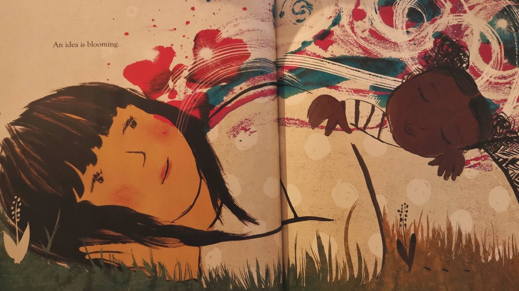 Cet album est rempli de sagesse, à la limite de la méditation. C’est d’ailleurs comme cela que l’a pensé l’autrice. Chaque page est une respiration. Il s’agit d’apprécier l’instant présent, ici et maintenant et de célébrer notre connexion au monde.