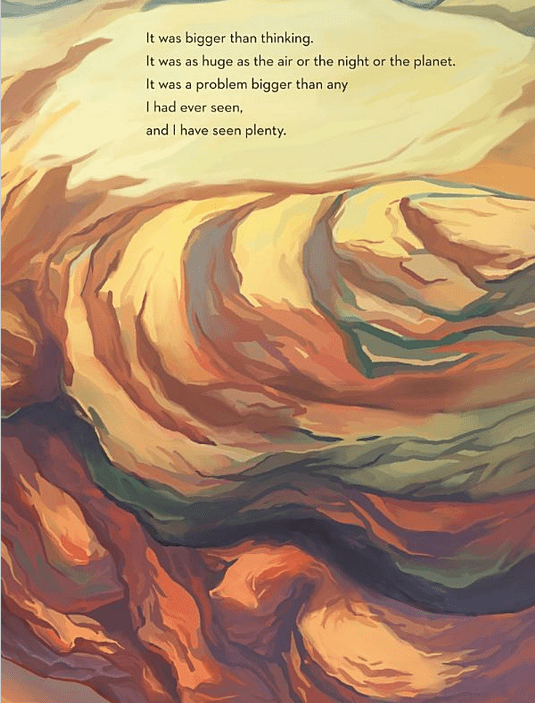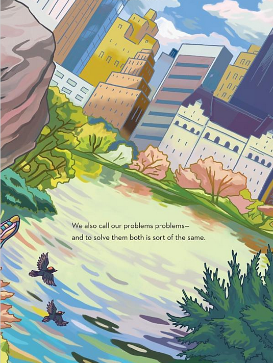 En s’appuyant sur son expérience, Ashima écrit donc son premier album jeunesse qui offre un parallèle parfait entre résoudre un problème en escalade et résoudre un problème dans la vie. Ces problèmes peuvent parfois nous donner l’impression qu’ils sont insurmontables et qu’on n’en verra jamais le bout, tellement ils s’élèvent haut dans le ciel. Il y a souvent des rebondissements, des chutes, parfois des blessures.