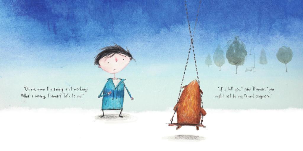 Errol and Thomas the teddy play together every day. But when Thomas feels sad one mornig – and nos event the swings cheer him up – Errol is worried. Thomas has a secret to share, and it’s something that is difficult to say out loud. Will Errol inderstand that Thomas would rather be called Tilly ? And can they still be friends ?