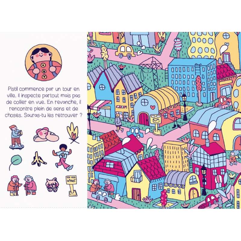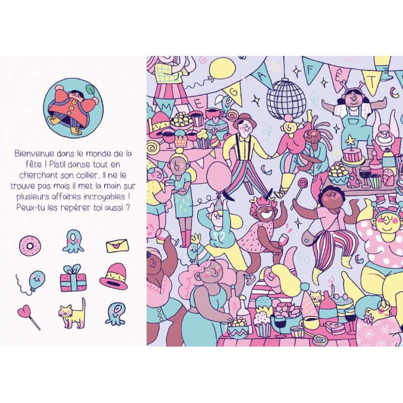 Cet album est un cherche et trouve adapté aux jeunes enfants, tout en couleur, dans l’univers de Marie Boiseau que je suis depuis longtemps. Comme cela ne vous a surement pas échappé, même si ce n’est pas le sujet, le personnage principal, Pistil, est gros, et rien que cela en fait un album jeunesse extraordinaire !