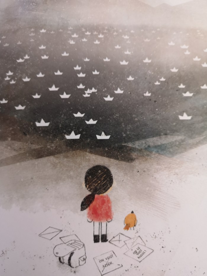 J’aime qu’il ne soit jamais ici question des origines de la jeune fille qui voyage dans ce grand nord canadien. La description qu’en fait la fauvette « humaine à tête noire » pourrait d’ailleurs être imaginée d’une manière totalement différente s’il n’y avait pas les images. Mais Bout’Chou et moi savons bien qu’elle nous ressemble, cette petite héroïne.