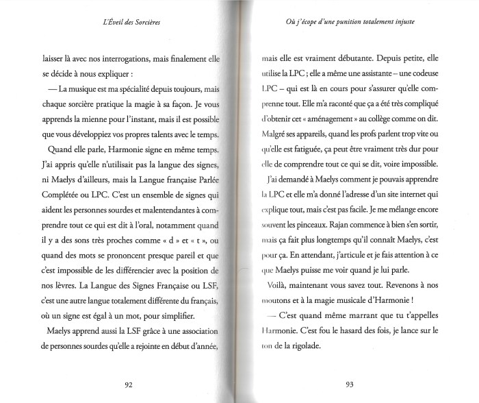 Gros coup de cœur pour le trio de sorcières, Rajan, tout jeune apprentie sorcière garçon, et Maelys, apprentie sorcière plus expérimentée qui offre une belle et puissante représentation d’une jeune fille sourde. Bref, un concentré sorore de féminisme, d’antigrossophobie et d’antivalidisme, sans histoire d’amour, sans compétition entre deux filles, un bonheur à lire !