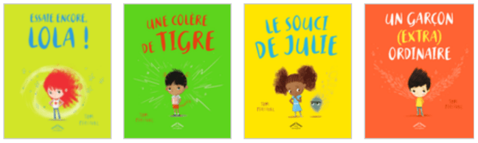 Lina se fait des amis est le quatrième volet d’une série créée par Tom Percival pour aborder des sujets autour de la santé mentale et émotionnelle des enfants, afin de les accompagner vers plus de confiance en elleux et mieux gérer leurs émotions. Je les ai tous et Bout’Chou apprécie de les lire à des moments bien précis. J’ai déjà présenté Le souci de Calie.
