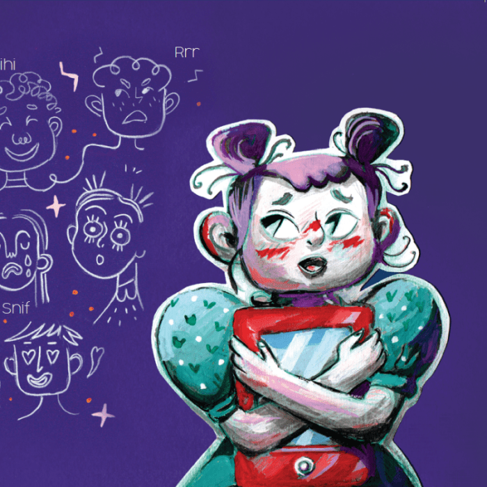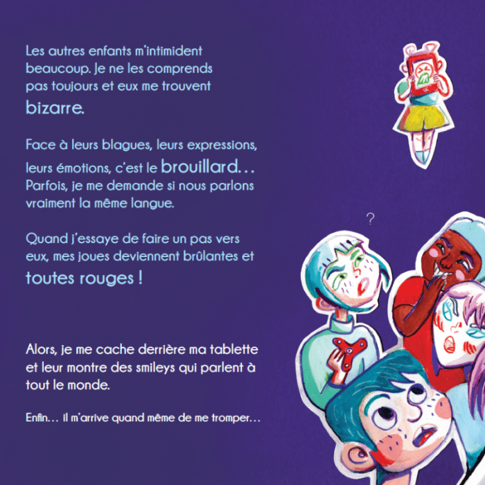 Matcha est une petite fille qui présente semble-t-il des difficultés d’habilité sociale. Toujours le nez dans sa tablette, elle communique difficilement avec les autres élèves de son école qui se moquent d’ailleurs d’elle. Elle va rencontrer Jasmin, un petit garçon qui gère très différemment ses émotions. Il se cache, fait des origamis et pleure à chaudes larmes. Matcha finit par apprendre que Jasmin s’était peint le visage à l’école en une œuvre d’art magnifique mais que les autres enfants s’étaient moqués de lui…