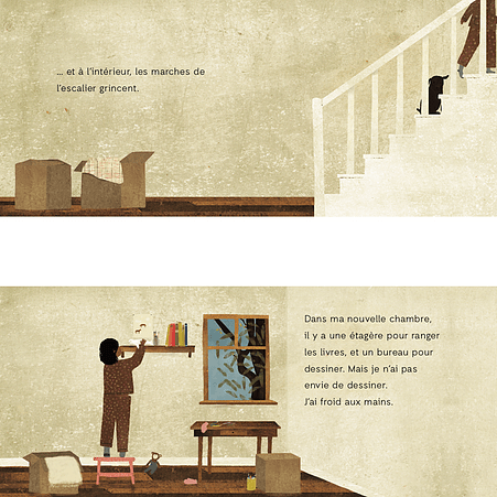 Au rythme des saisons, avec un texte aussi poétique que les illustrations, l’autrice nous parle de renouveau. Pour Katherena, c’est un déménagement, des adieux, une nouvelle chambre mais toujours avec maman.