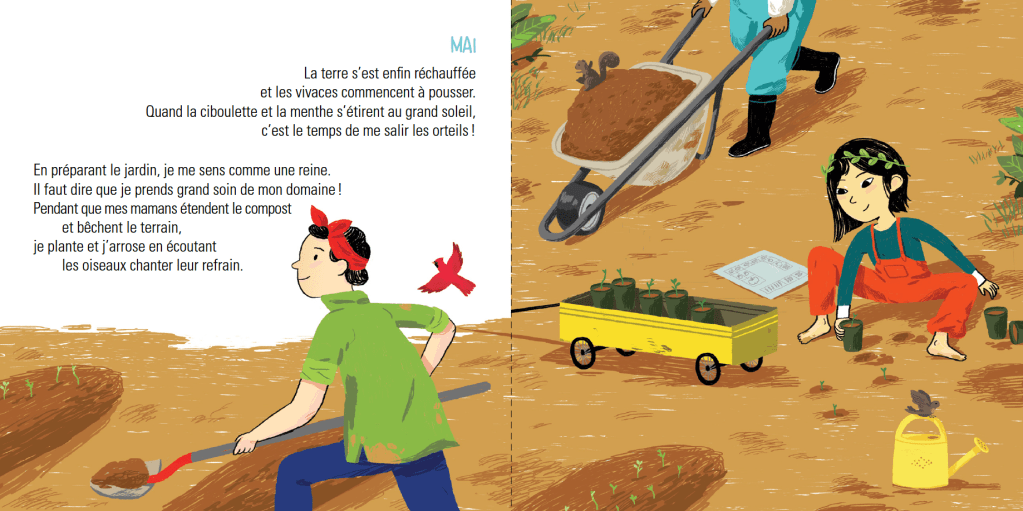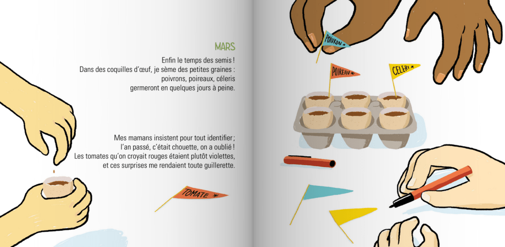 Lorsqu’on jardine, chaque mois a son importance, et si le temps ne permet pas de travailler au jardin, il permet de préparer et planifier les tâches à faire. Notre héroïne pense donc à son futur potager, encore plus grand que celui de l’année dernière, peut-être un peu plus organisé – en tout cas c’est ce que souhaiteraient ses mamans – de quoi déguster dans tous les cas de bons petits plats en famille !