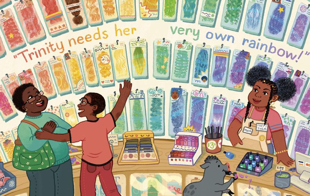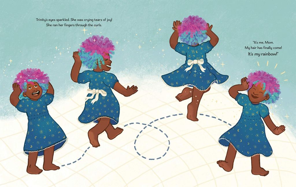Warm morning sunlight and love fill the Neal home. And on one quiet day, playtime leads to an important realization:Trinity wants long hair like her dolls. She needs it to express who she truly is. So her family decides to take a trip to the beauty supply store, but none of the wigs is the perfect fit. Determined, Mom leaves with bundles of hair in hand, ready to craft a wig as colorful and vibrant as her daughter is.