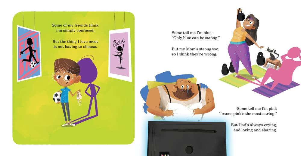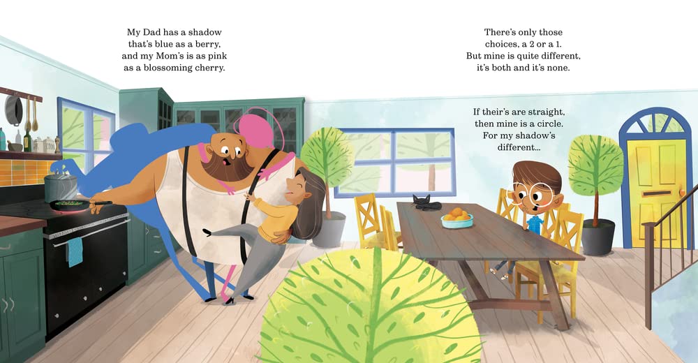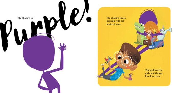C’est l’histoire d’un·e enfant non binaire dont l’ombre est violette. Celle de son père est bleue comme une myrtille et celle de sa mère est rose comme les fleurs d’un cerisier. Il semble à première vue qu’il n’y ait que ces deux possibilités.