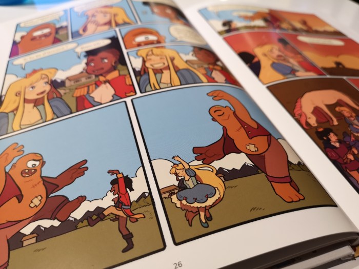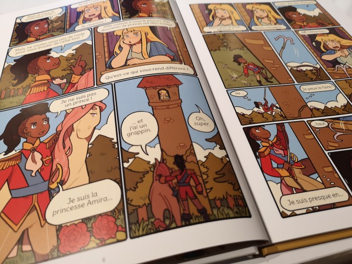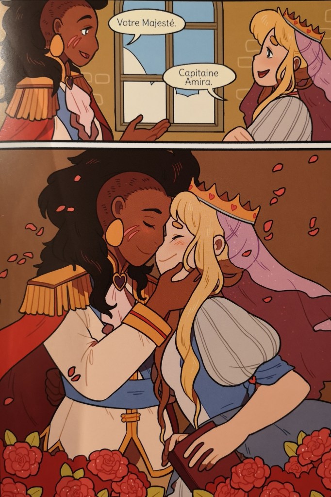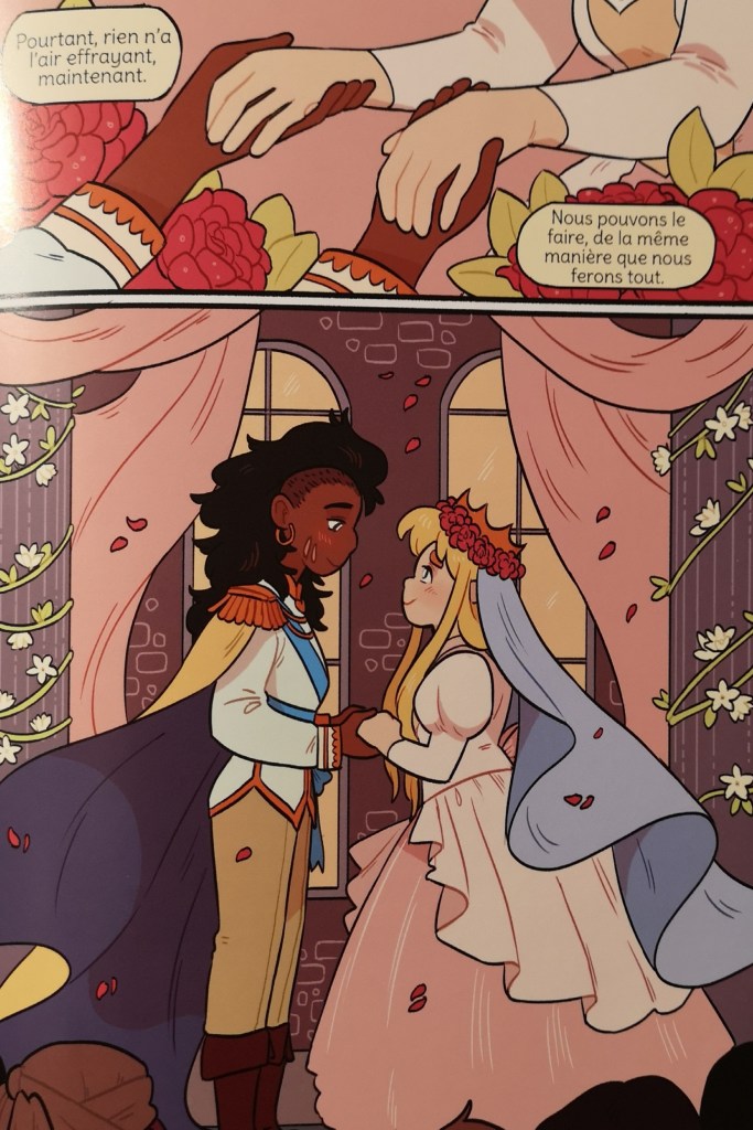 Les illustrations sont douces et colorées, les personnages mettent un gros coup de pieds aux stéréotypes de genre… L’histoire aborde en filigrane le privilège de princesse, le besoin d’être soi au-delà des apparences, la pression sur les hommes, la grossophobie, la patience en amour, l’accomplissement de soi avant le couple…