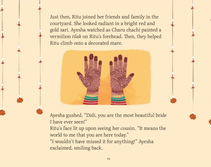 C’est sans compter la peur, la colère, l’indignation et l’incompréhension d’Ayesha ! N’écoutant alors que son courage, elle hurle : « Ma didi Ritu va se marier aujourd’hui et je vais danser tout au long de son baraat! » Il n’en fallait pas plus pour que tout le cortège la suive et reprenne sa route, mené par les deux fiancées.