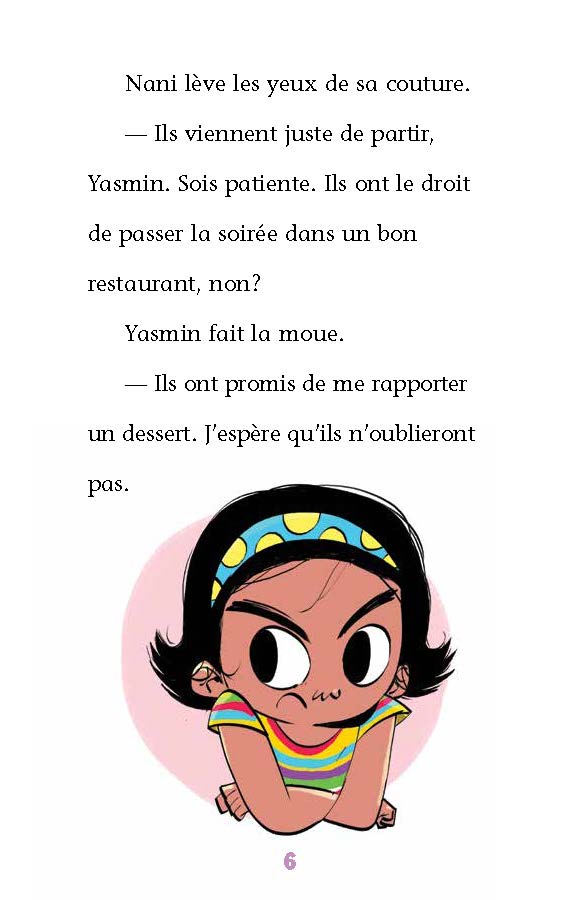 Mama et Baba ont promis de revenir avec un bon dessert de leur sortie au restaurant, mais en attendant, Yasmin s’ennuie avec ses grand-parents, Nani et Nana. Mais c’est sans compter son imagination et sa créativité qui va embarquer Nani dans un défilé de mode mêlant kameez, sari et hijab !