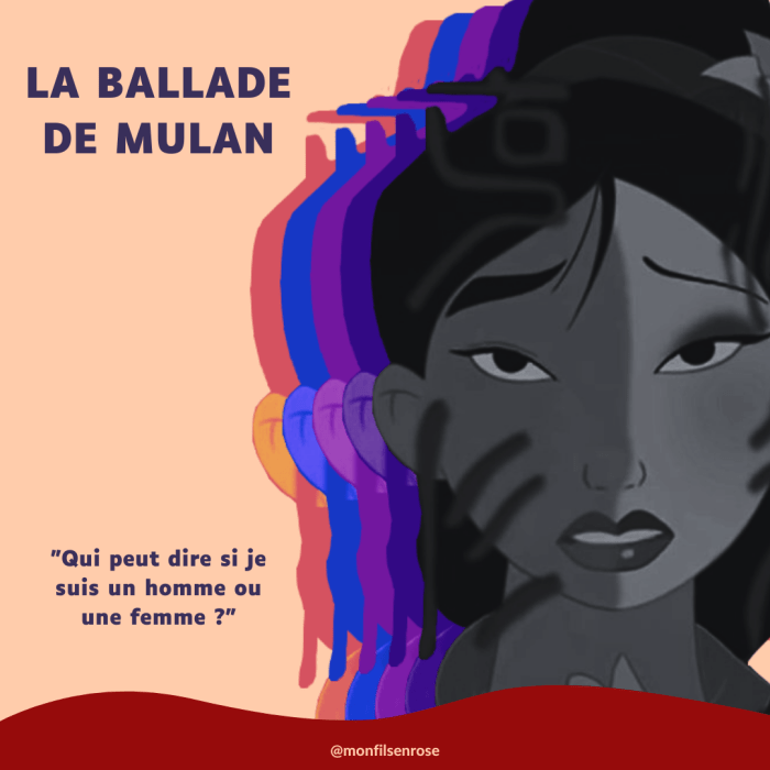 Qui peut dire si Mulan a vraiment exister ? Mais selon moi, une telle ballade n'aurait pas pu exister - et encore moins traverser le temps - sans une once de vérité... Et en 2022, 16 siècles plus tard, certaines personnes gagneraient vraiment à s'inspirer de cette ballade, qui se moque ouvertement de la binarité de genre.